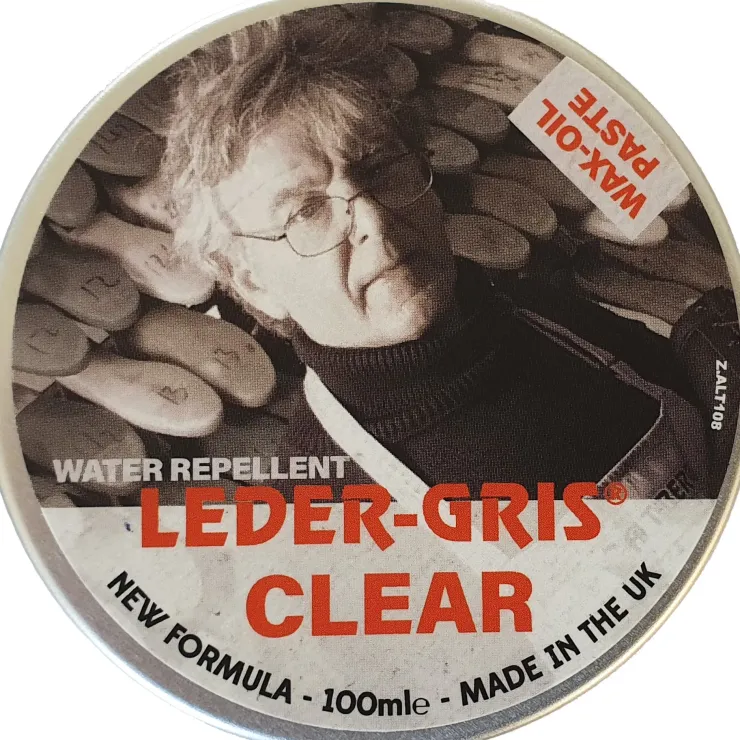The specialist oils in Leder-Gris penetrate the surface of the leather to keep it supple, whilst the waxes remain on (or closer) to the surface to enhance water repellency.