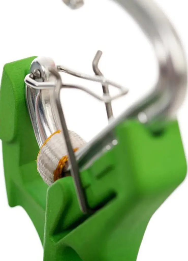 - A dual position spring to securely retain carabiners, optimise gate opening and release smoothly