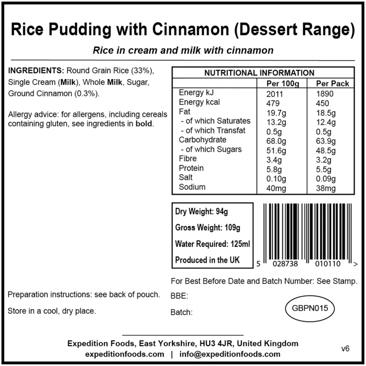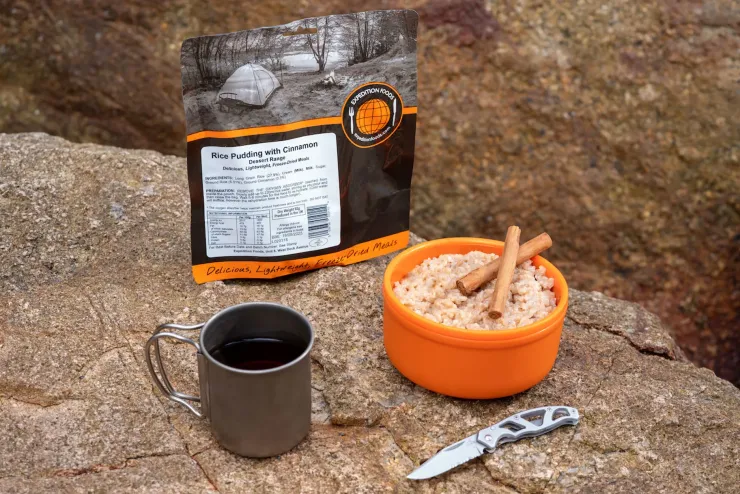This creamy rice pudding infused with cinnamon flavour is just heavenly!! It’s an effortless, straightforward treat that’s the perfect dessert to complement an Expedition Foods meal or to have as breakfast or even a snack. Featuring long grain rice, cream, sugar and ground cinnamon, you can’t go wrong with this popular dessert / breakfast. Just add hot water, stir, wait five minutes, and you’ll be the happiest person around the campfire.