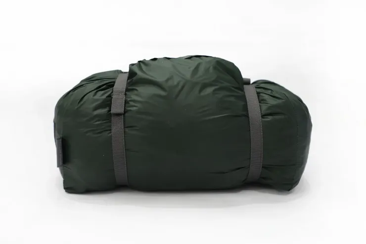 The oversized fast pack tent bag with allows for easy packing and compression straps control pack size.