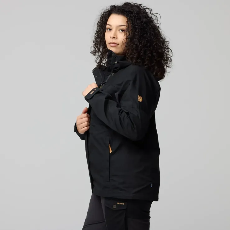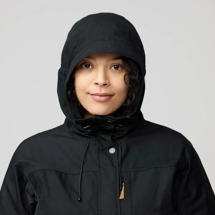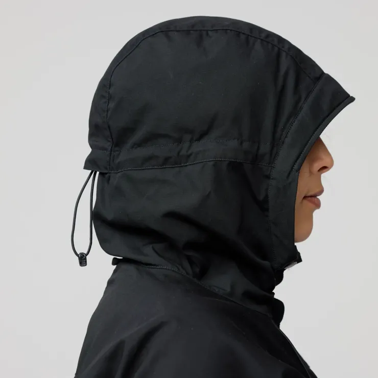 This jacket includes three zippered pockets and one inside pocket – perfect for things needed close at hand. The adjustable hood is finished with a protective brim, and the two-way front zipper is protected with a flap and press buttons at the top and hem. Velcro adjustments at the sleeve cuffs and a drawcord hem provides the perfect fit.