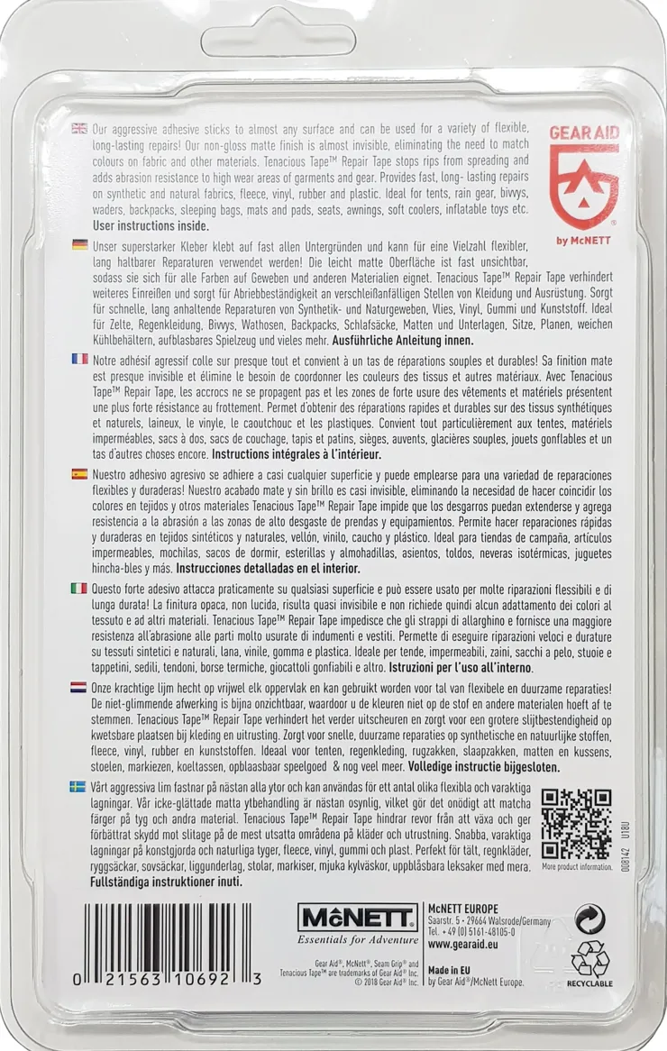 Backed by an ultra-aggressive adhesive, it won’t peel off when applied to technical fabrics including nylon and vinyl. Instantly make a repair patch to mend a tent or hammock. You can even use it as vinyl repair tape. The nylon fabric tapes offer a barely noticeable solution that stays put no matter what Mother Nature dishes out. Once applied, wait 24 hours and it becomes machine washable. Select from a full line of tough tapes to repair outdoor gear, including tarps and awnings. Whatever needs a quick fix, Tenacious Tape will handle it – allowing you to stay outside longer.