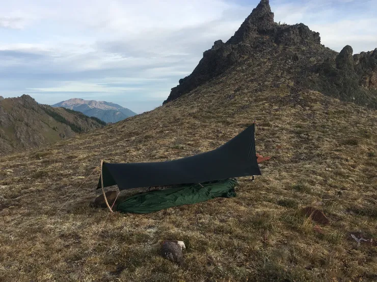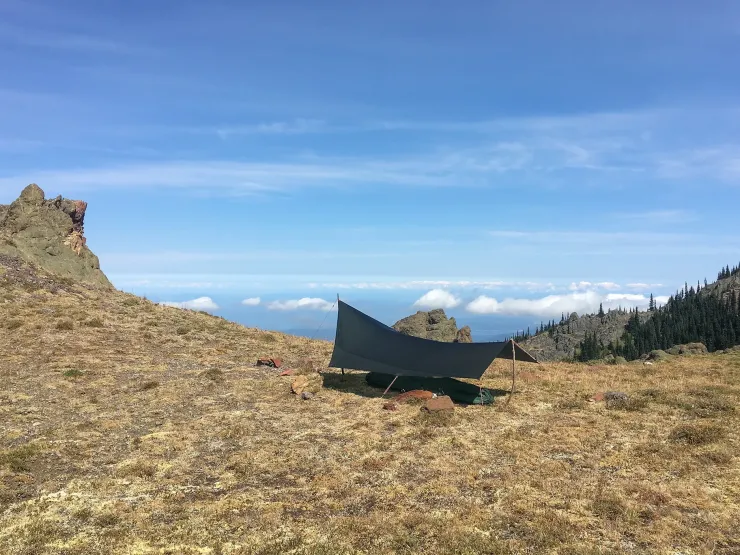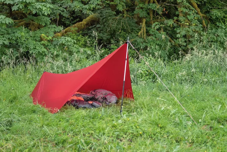 The Tarp 5’s shape makes it easy to get into and out of, and it can be pitched fairly high off the ground for the full, airy, tarp experience, or with its edges nearly down, or even fully on the ground for a remarkably protective refuge from bad weather.