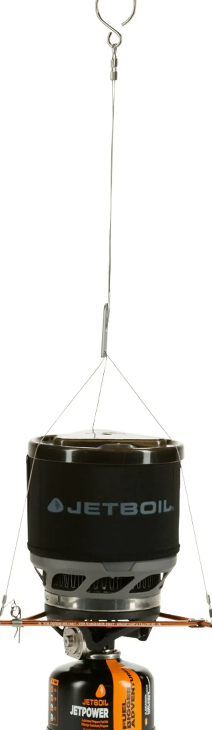 Use the hanging kit to suspend Zip, Flash, MicroMo, MiniMo, and SUMO cooking systems. Not for use with the Jetboil MightyMo, Joule, cookware and accessories.