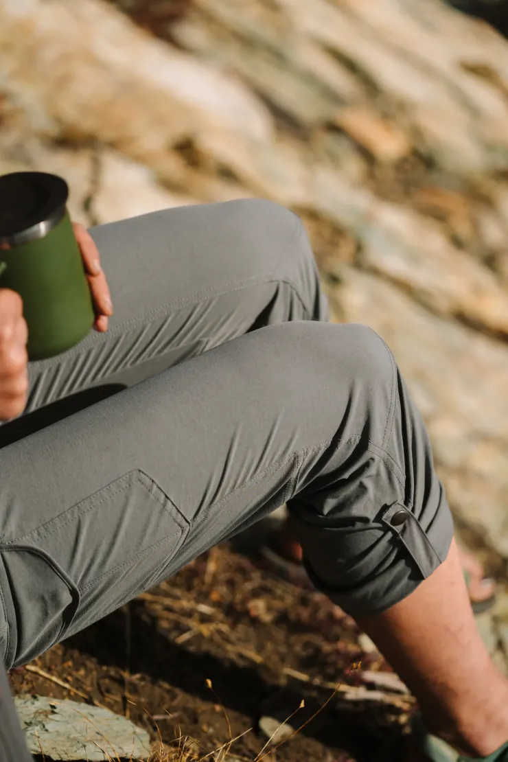 ROLL-UP will quickly become your go-to for everyday comfort. Maximum sun protection (UPF 50+) and the pant legs can be rolled up and secured with a snap.Material