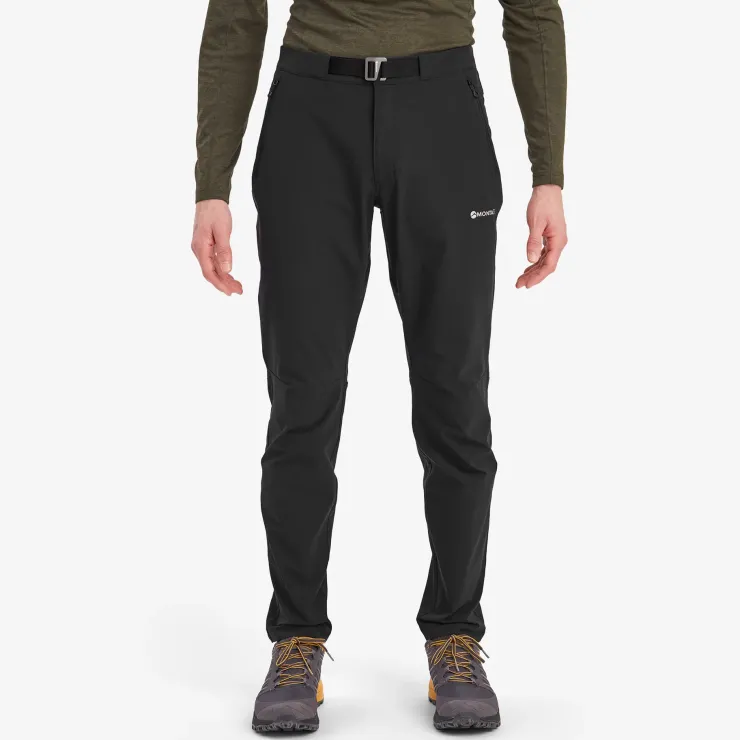 The Montane Men’s Dynamic Lite Stretch Pants are a slim fitting pant with articulated knees and have been designed with a four way stretch fabric with a zipped fly, snap press closure fastening and integrated belt; which keeps these pants in place while you’re on the move.