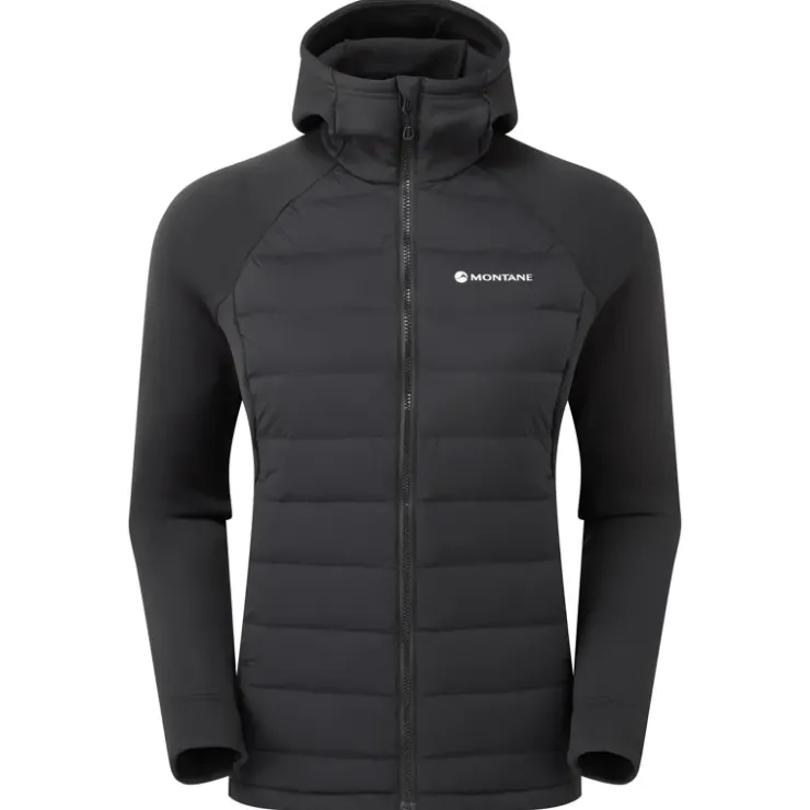 The Montane Women’s Composite Hooded Down Jacket is a protective, durable thermal layer designed for unrestricted movement in cold conditions. A durable design is delivered through use of Pertex Quantum 3D weave fabric with 2-way stretch, this offers extreme, durable protection that can withstand the harshest of elements. Combining this fabric with THERMO Stretch Fleece provides a precision fit that allows for ultimate freedom of movement. HyperDRY 750+ fill power Duck down with PFC-Free DWR greatly improves thermal performance in wetter conditions and keeps your core body warm when you need it! Built with movement in mind, the Composite down jacket will keep you warm and protected when taking on a range of fast-paced activities in the mountains, including climbing or hiking.Features