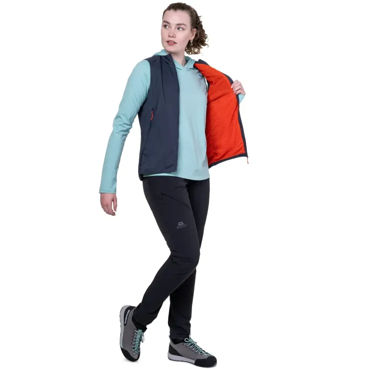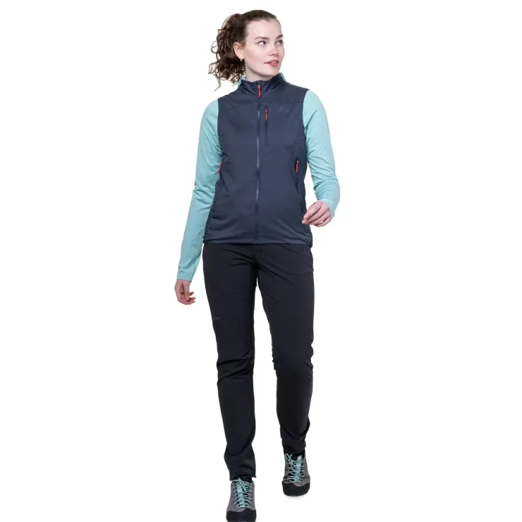 A versatile layer providing windproofness and just enough warmth. With a superlight double-weave soft shell fabric and a moisture-wicking micro-grid lining it dries quickly after the ascent and its vest design doesn’t impede movement.