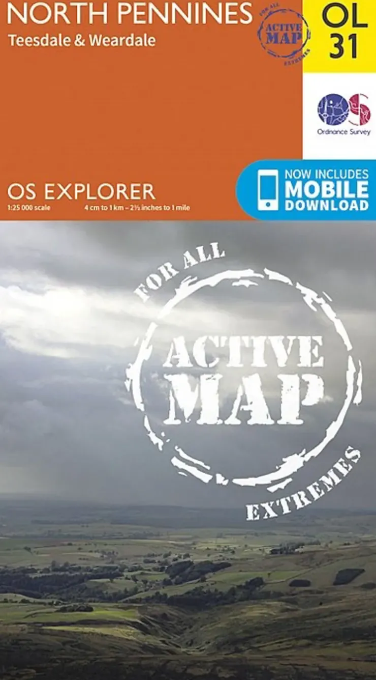Ordnance Survey OS Explorer – Active Map OL31 – North Pennines Outlet