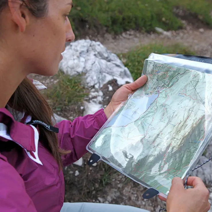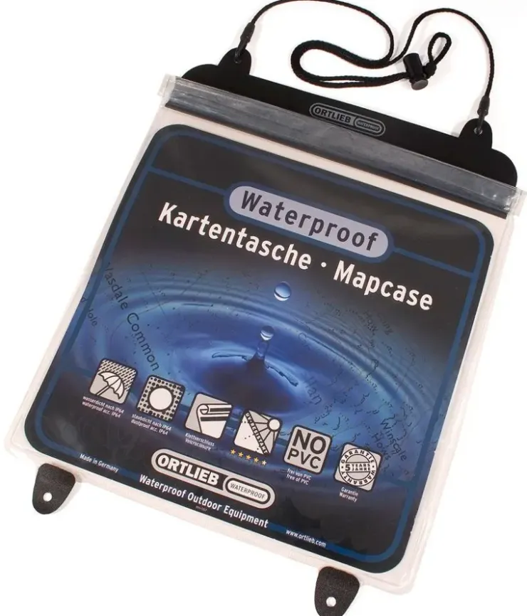 Ideal for hiking, paragliding, caning or biking – your map is kept dry and readable from both sides. It may be carried around your neck or secured to your rucksack by the neck cord with cord locks and snap hooks.