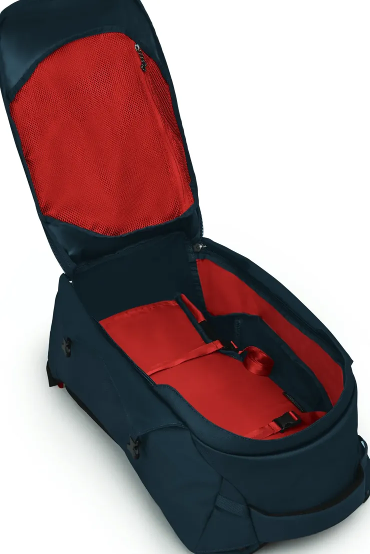 - Two internal compression straps hold contents securely