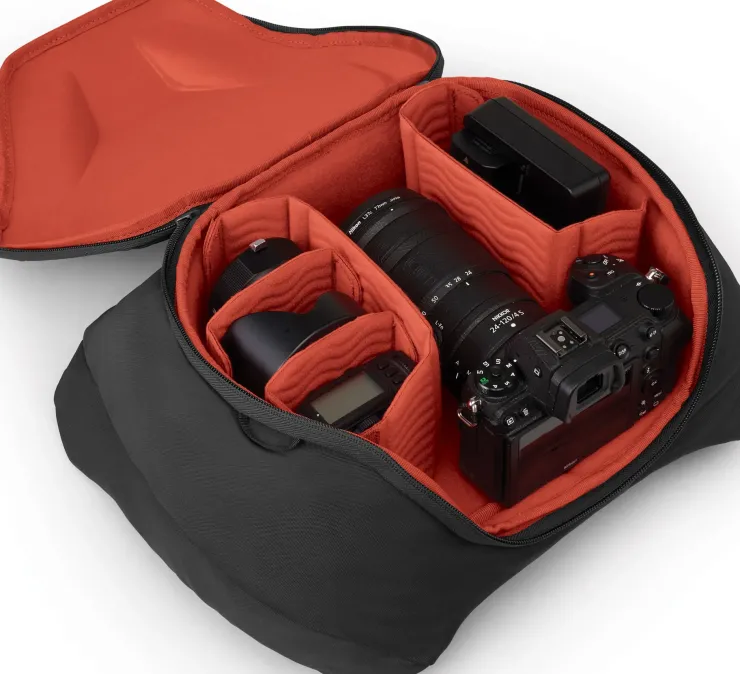 Sized to fit a body and two to three lenses. Converts to a lumbar pack to conveniently carry everything on side trips.