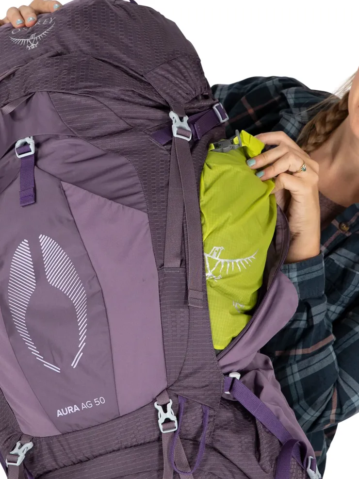 AntiGravity suspension delivers a weight-defying fit that seamlessly envelopes your back and hips in 3D-suspended mesh that’ll have you wondering where all that weight you packed went. Trust us when we say it’s still there—the suspension is just that good. From easy-to-use stretch mesh side pockets, Stow-on-the-Go trekking pole attachment, integrated raincover and FlapJacket for lidless use, the Aura AG 50 is a compromise-free women’s backpacking pack. Made with 100% recycled materials.