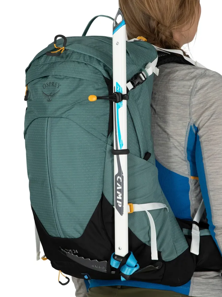 - Single ice axe loop with bungee tie-offs