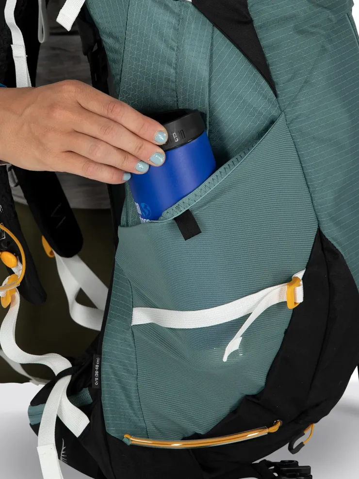 - Side stretch mesh bottle pockets