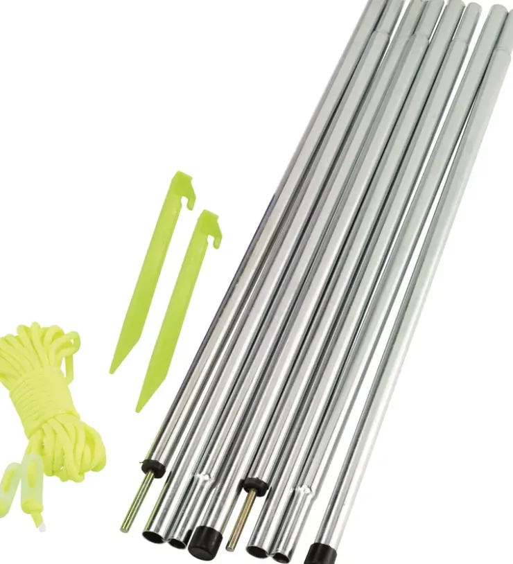 They hold the fabric of the door aloft, providing you with shelter under which to relax. Guylines and pegs are provided to secure the poles in an upright position.