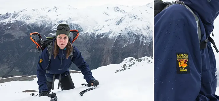 Nikwax Analogy Waterproof fabric is more than just breathable, it is directional. Nikwax Analogy Waterproof Fabric. This means it is capable of moving liquid water away from your body and not just water vapour. It is essential to avoid a build-up of water in your clothing system when you are working hard, as too much retained moisture will lead to your body rapidly chilling when you stop and rest. In conventional clothing systems, approximately 20% of sweat production is dealt with effectively, leaving the remaining 80% trapped inside. Nikwax Analogy garments are unique, in that they pump out this 80% of liquid water and allow it to drain away; you are left feeling dry and comfortable.