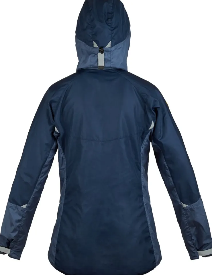 The two-way reversed front zip with internal storm flap offers extra ventilation and visibility is improved from the use of reflective flashes. A scooped tail with hem drawcord also offers lower back protection.