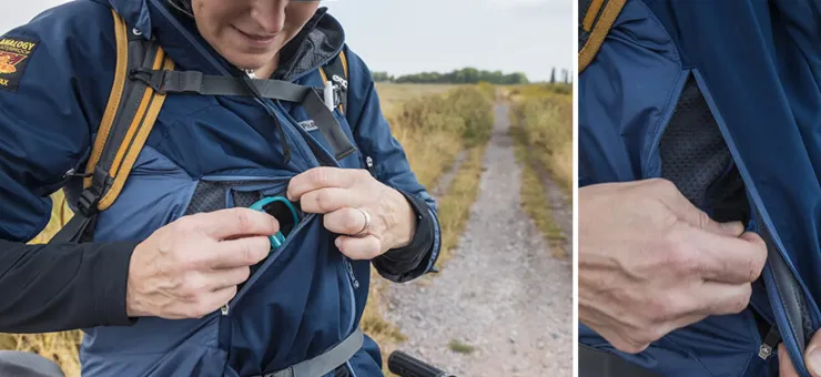 - Two large “dual phase” secure chest pockets also work as vents: