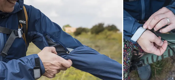 – OS map-sized chest pockets are accessed via inner zips. The right-hand pocket has a secondary zipped internal pocket for small valuables. - Forward facing, mesh-lined arm vents with locking YKK zips for quick ventilation