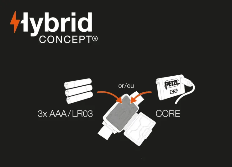 – HYBRID CONCEPT design: TIKKA® CORE comes with the CORE rechargeable battery and also works with three AAA/LR03 batteries (not included); it automatically detects the energy source and adjusts lighting performance