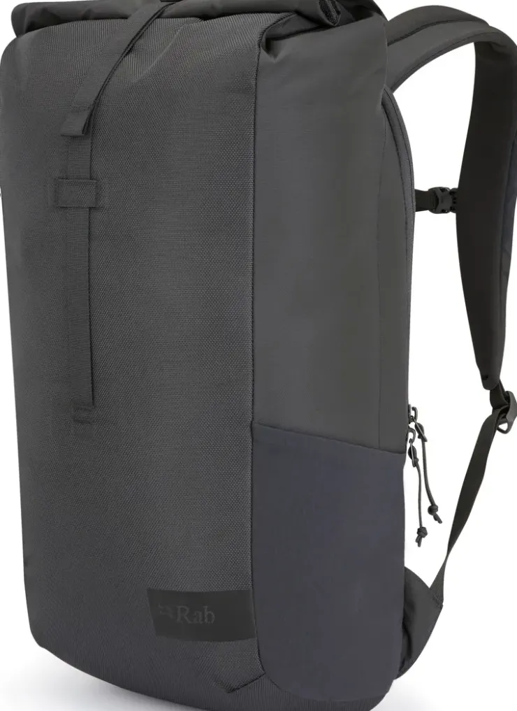 With a streamlined aesthetic and roll-top opening, the Rab Depot 25 features a moulded back panel, bucket-style compartment and a laptop compartment with waterproof Dryzone™ laptop sleeve.