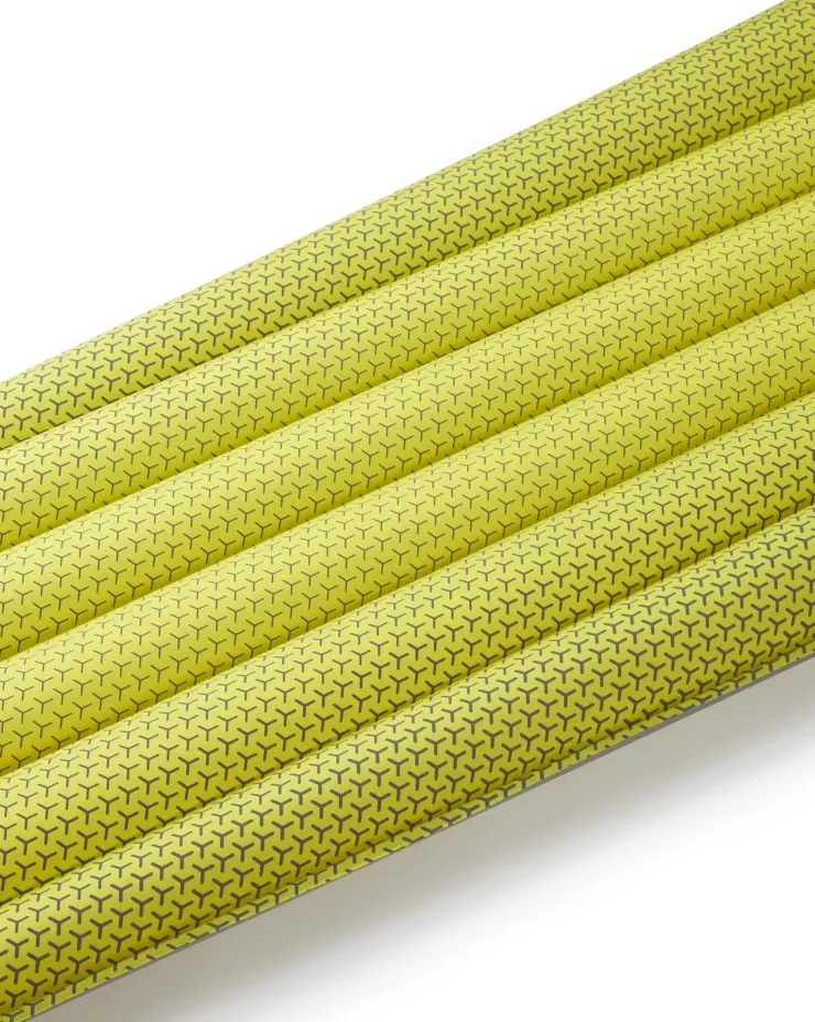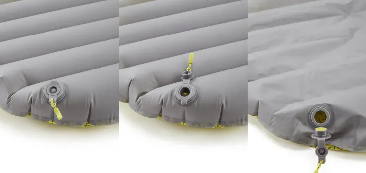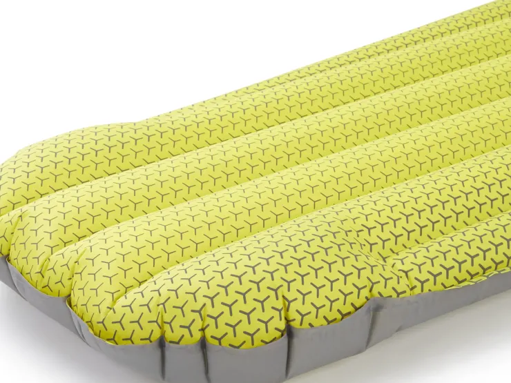 The tapered mummy shape is economical on weight, keeping pack size to a minimum. Oversized outer chambers ensure you stay central on the mat as you sleep, and the soft-finish fabric features a graduated grip print to reduce sleeping bag slip during the night. Inflation and deflation are quick and easy thanks to the low-profile two-way valve and pump sack.