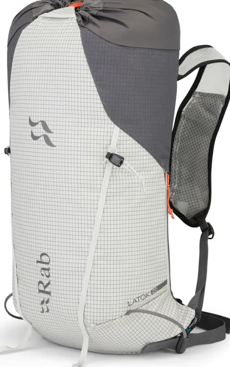 Every detail of the ultralight Rab Latok 20 pack has been refined to keep weight and bulk to a minimum and give you unrestricted mobility on vertical adventures. This 20L top-loading pack is constructed with ultra-tough, abrasion-resistant Cordura fabric with Spectra® Ripstop, which will endure scrapes with rock and ice in the most rugged terrain.