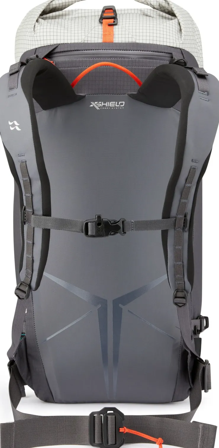 The X-SHIELD™ back system is designed to sit close to your back to give you complete freedom to move with dual density foam straps for even better mobility. Thicker padding at the top for comfort, and thinner lower down, the straps contour the body and move with you. The roll top entry is highly weatherproof, strong and easy to get into, giving you space to load up with everything you need, and a wealth of gear attachments keeps equipment close at hand. From ambitious alpinism to ski mountaineering, the Latok 28 is built for fast moving ascents where every gram counts.