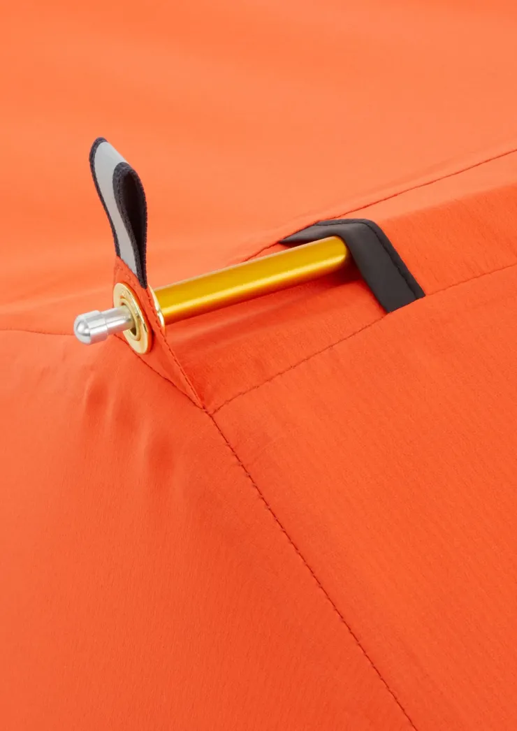 For maximum overnight dryness and comfort, it is built from 15D Pertex Shield Air – a three-layer waterproof fabric engineered with nanoscale fibres, delivering extreme air permeability of 0.8 CFM. That is partnered with a DWR-equipped 70D nylon bathtub base with taped seams for heavy-duty protection from ground moisture. A transverse pole maximises headroom, creating easy sitting space for two people and the zipped main entry is compatible with the MR-57 vestibule for extra storage and snow-melting space. Designed for cold, high-altitude environments, where dryness and protection are critical.