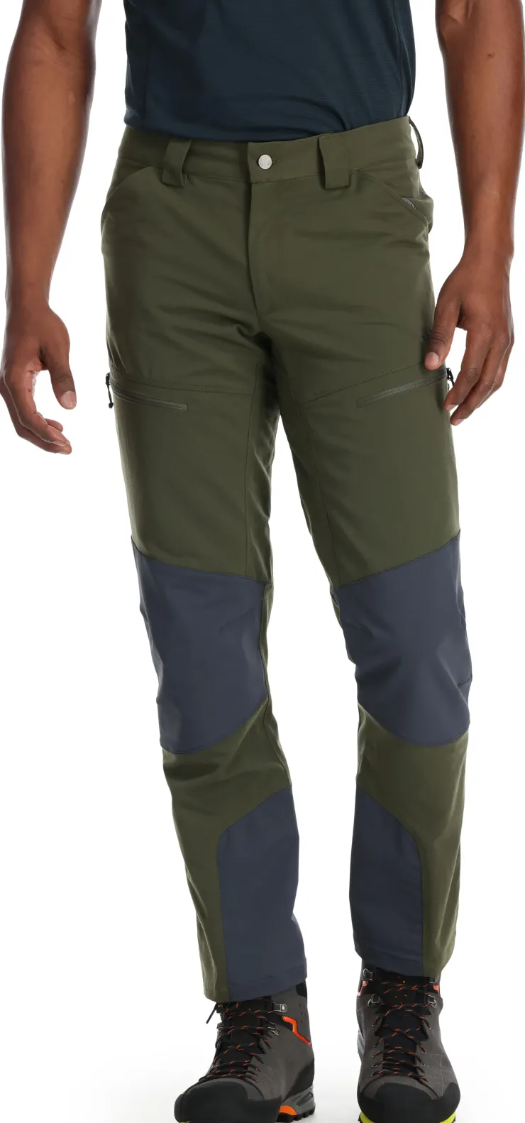 Functional outdoor pants with reinforcement in high wear areas, for winter walking, scrambling and mountain trekking in cold climates.