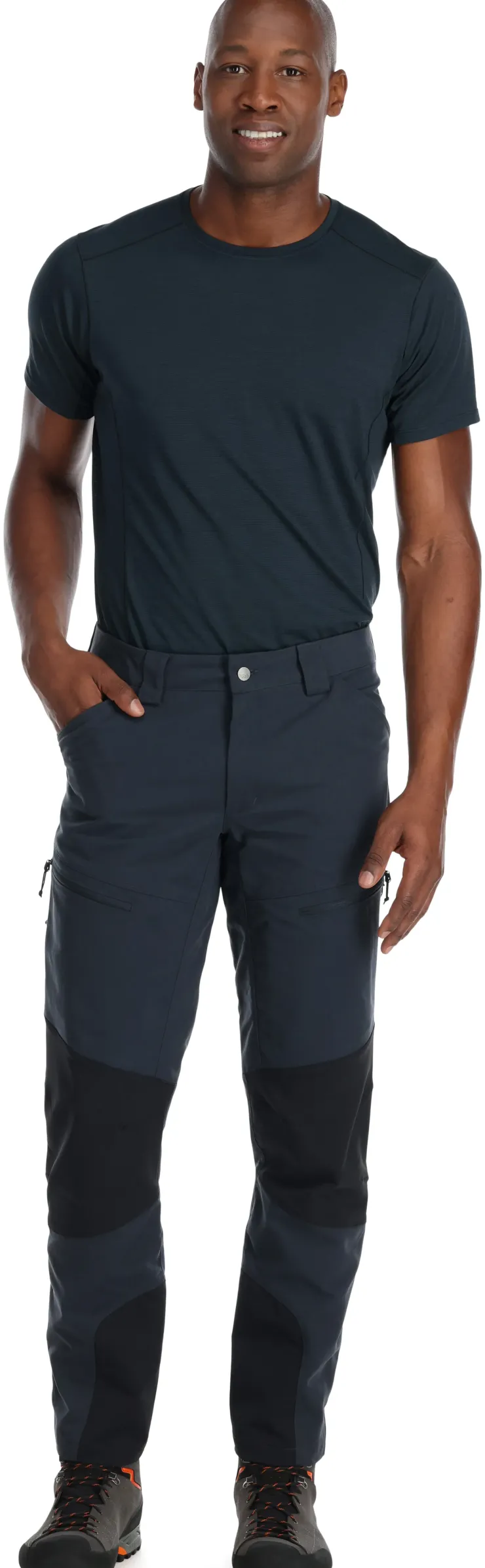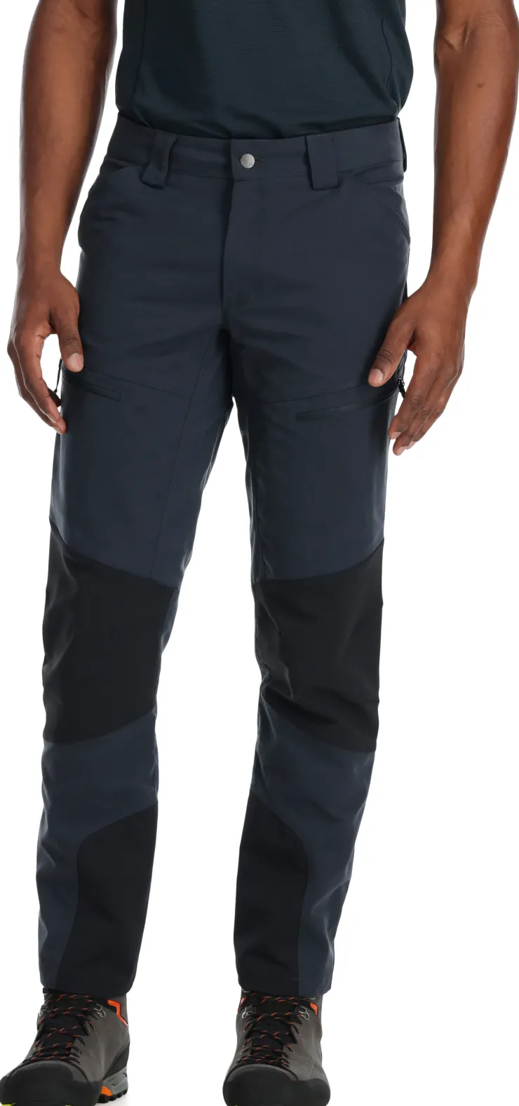 Functional outdoor pants with reinforcement in high wear areas, for winter walking, scrambling and mountain trekking in cold climates.