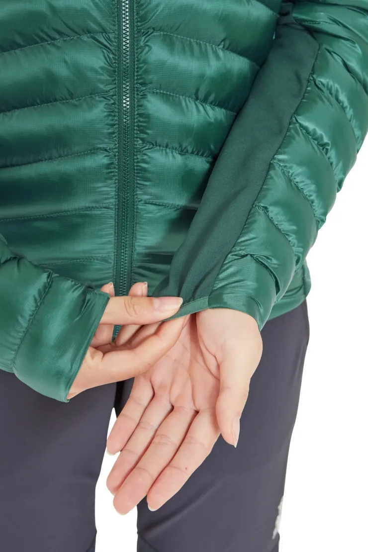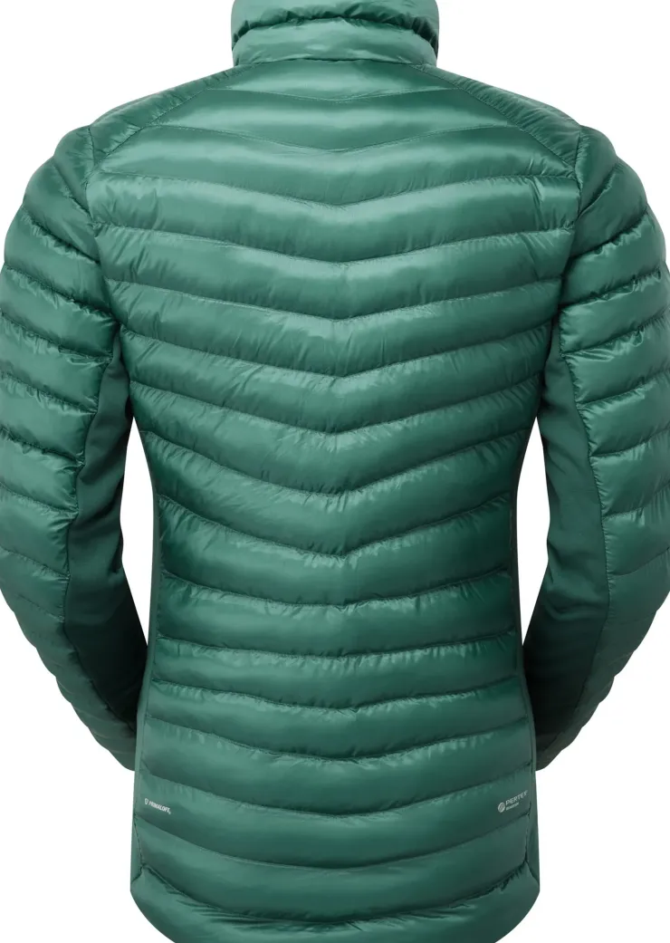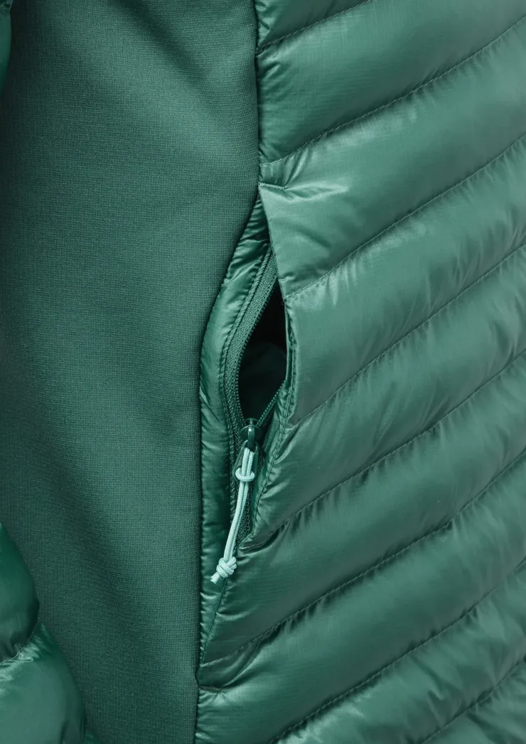 Lightweight, packable insulated jacket with fleece side panels for breathability and superb mobility.