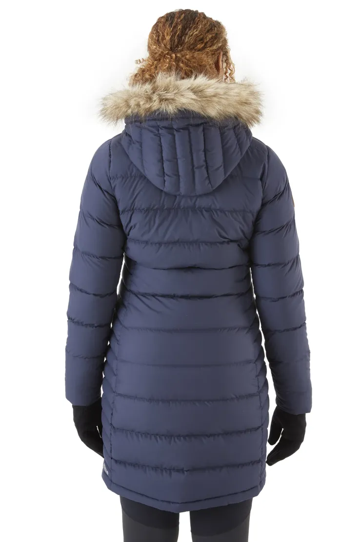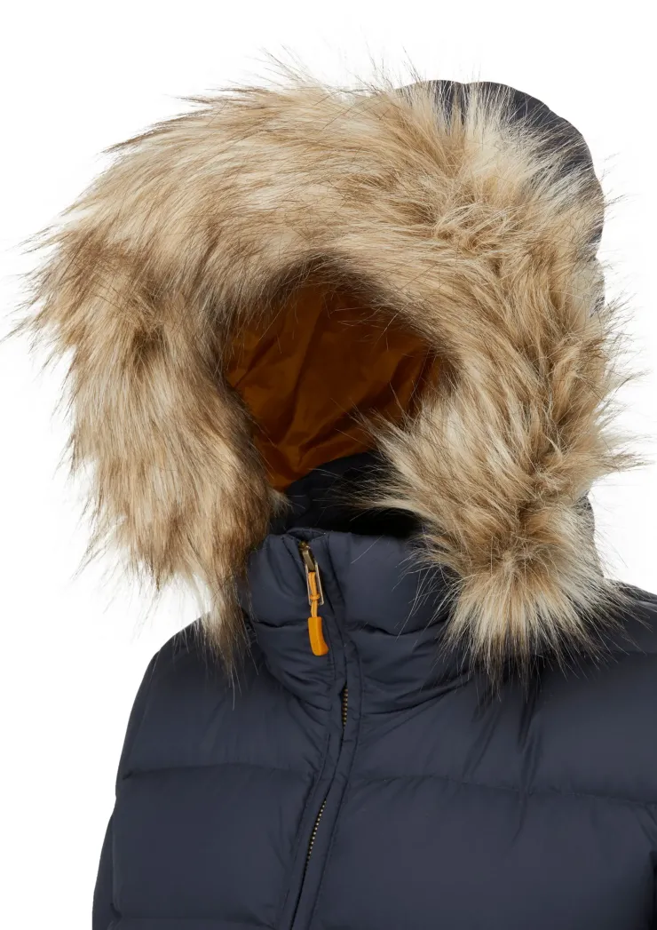 Cosy down with the Rab Women’s Deep Cover Parka. With a slim, flattering fit designed to provide top to bottom protection from the elements.