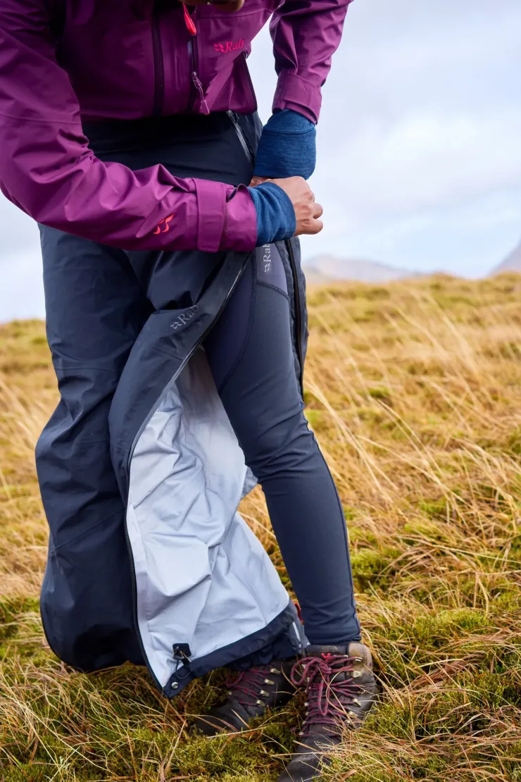Compact in your pack and quick to deploy in a storm, the Rab Women’s Downpour Mountain Pants are a staple on your kit list for demanding hikes, treks, and scrambles. Engineered with 2.5-layer Pertex® Shield and excellent knee articulation, they offer a finely tuned balance of low weight, mobility, and durability that’s ideal for tackling more technical terrain and unpredictable weather.