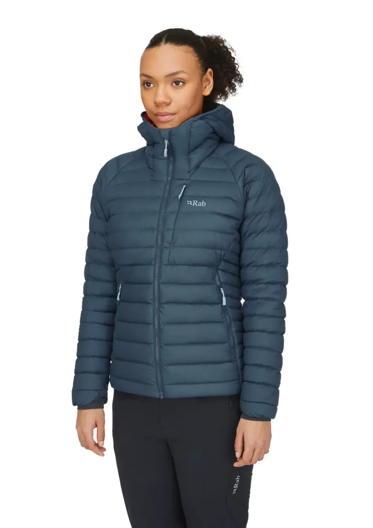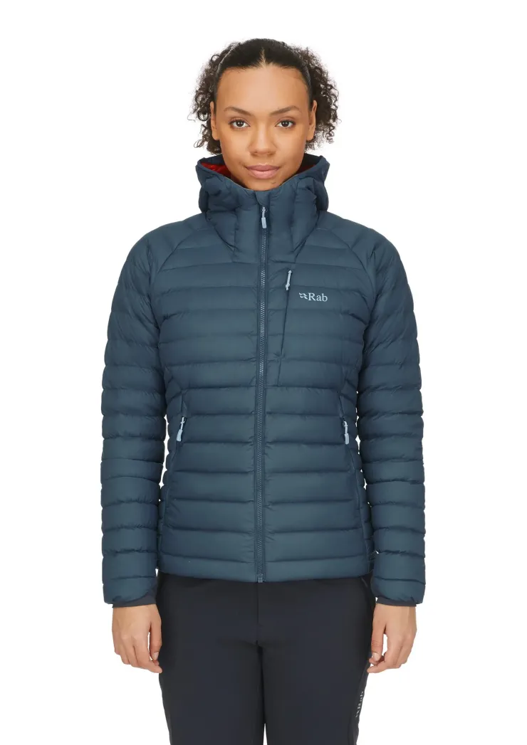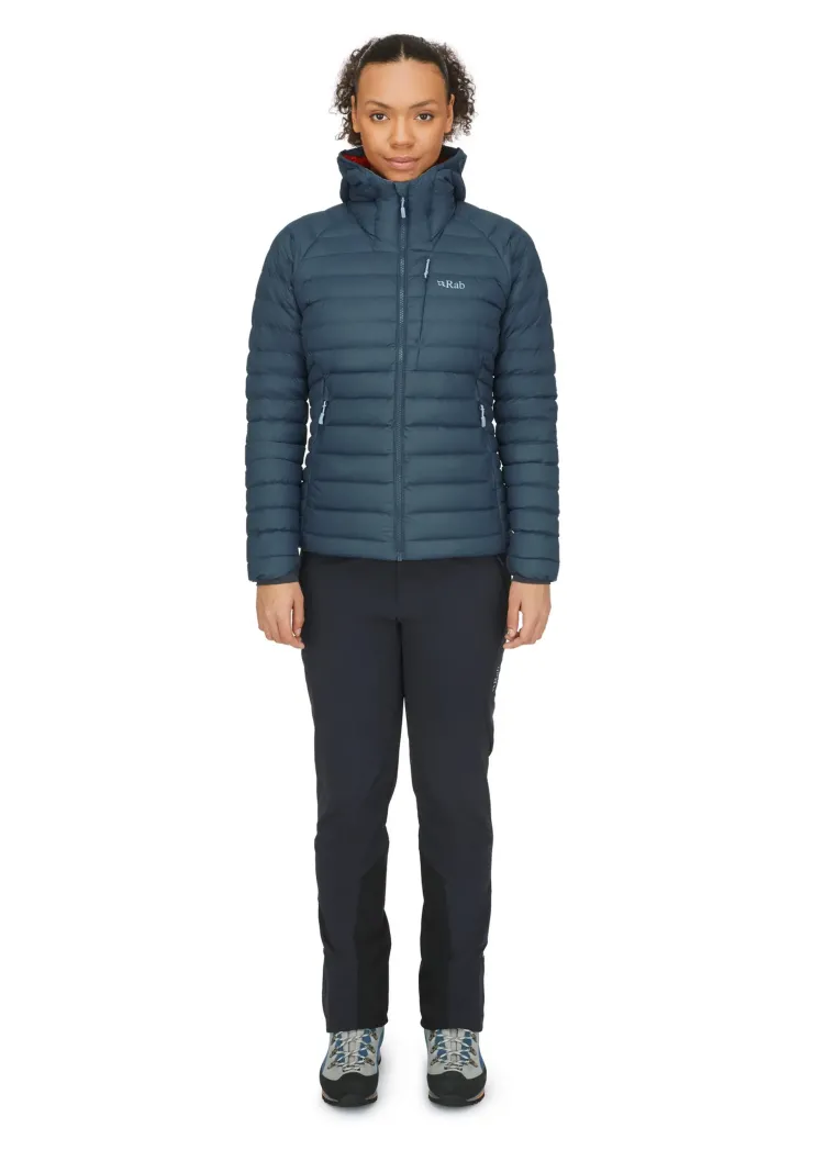 This outer fabric is super lightweight with impressive weather protection, coping with light snow, spin drift and moisture. It is exceptionally breathable and soft to the touch, offering a quiet and comfortable hooded down jacket for all mountain activities.Built with zoned micro and nano baffles, the 700FP P.U.R.E recycled down has been body mapped to optimise warmth and breathability where you need it. Suitable for hiking, scrambling, and climbing adventures, it has a slim, active fit and a warm, helmet compatible, down filled hood with a stiffened peak for complete protection. It has elasticated cuffs for a seamless fit with gloves, a full length, durable front zip, a concealed chest pocket and two hand pockets, with YKK® zips throughout. Highly compressible, the Infinity Microlight can be packed down easily into your pack to be pulled out when the temperature drops.