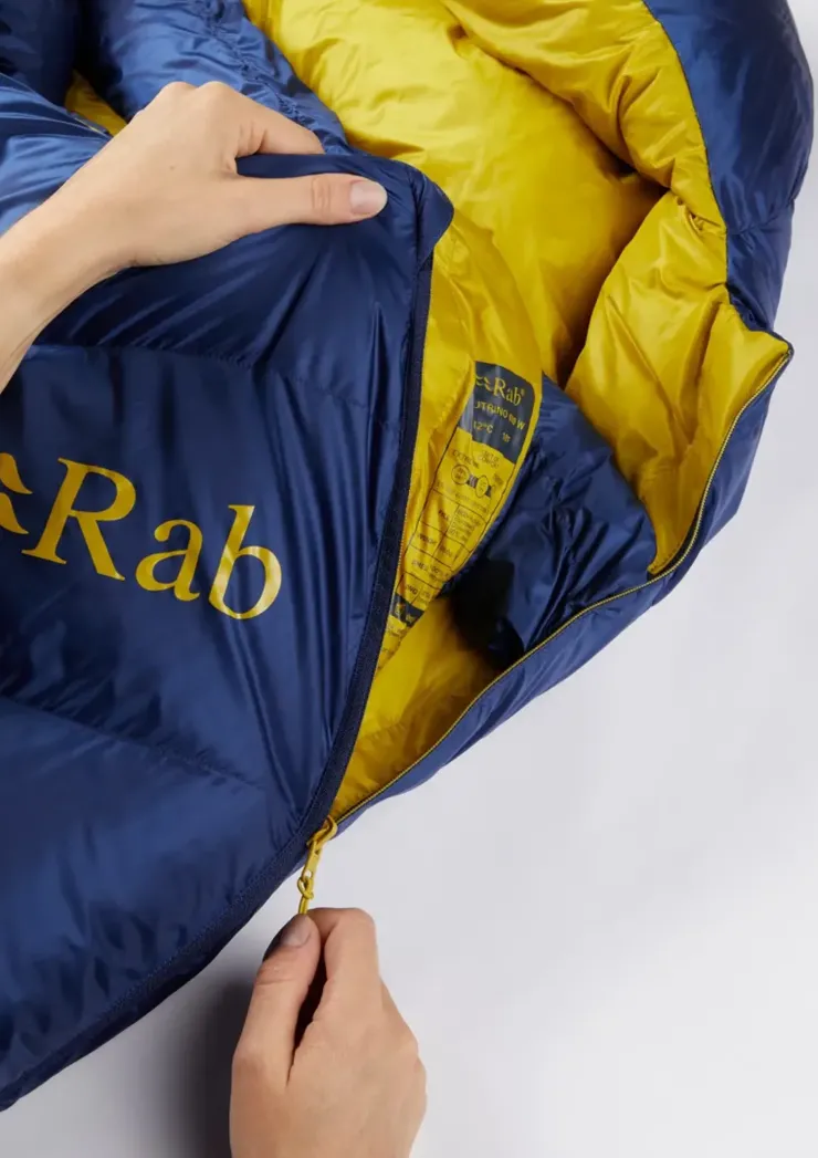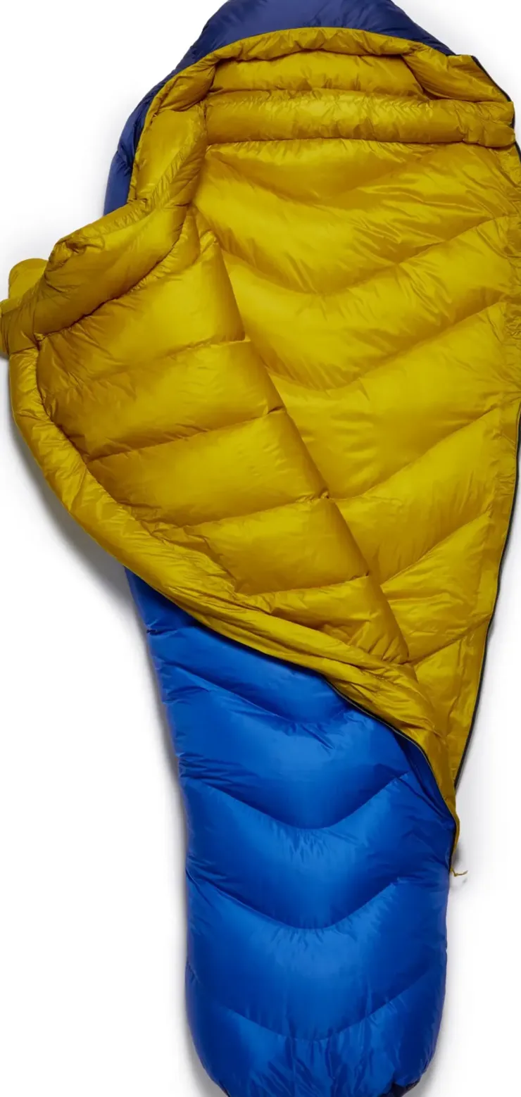 The Rab Neutrino 600 is a goose down filled, winter sleeping bag with a slim fitting, tapered mummy shape.