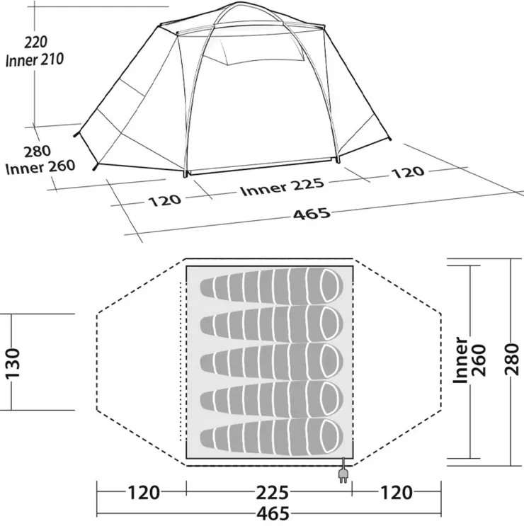 - Floor: Double-coated 100% Polyethylene, 10,000mm hydrostatic head