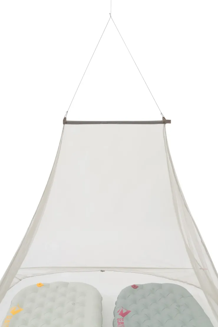 Ultra-Vis 15D mesh is exceptionally light and offers great visibility and air flow. The asymmetric shape means the apex of the pyramid is closer to the head end for more usable space. An elasticized hem tucks under your sleeping mat or mattress for a secure fit (lift up the side to enter or exit – the Nano Pyramid Net Shelter does not have a zippered door). Coloured tapes at each corner and a single suspension point ensure easy setup, plus the hexagonal mesh with 500 holes per inch provides good airflow. Available in both single and double versions, you can opt for the