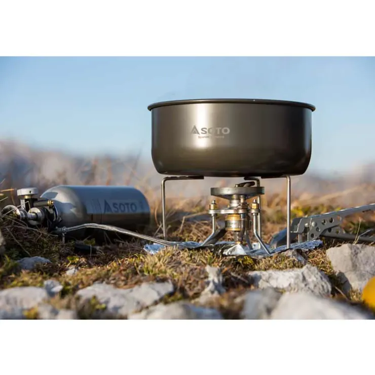 The StormBreaker has adopted the SmartPump principle, first introduced with the SOTO MUKA stove, which also allows operation with gas. Using a wind-resistant design, it combines the advantages of a freestanding gas stove with those of a gas stove that works safely, cleanly and quietly.