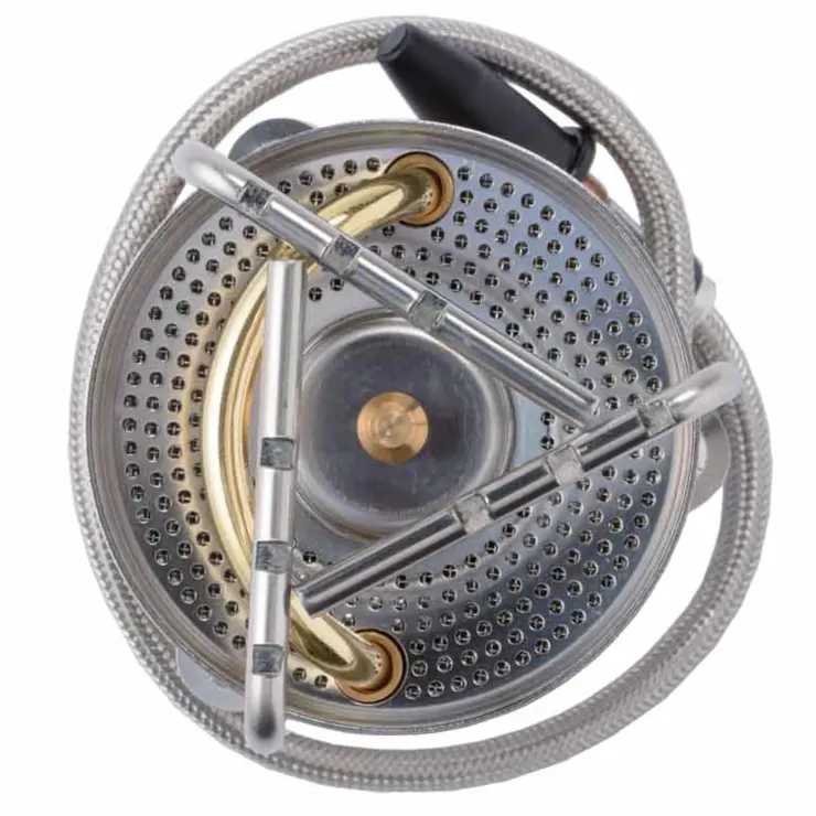 - Stove with sturdy, flexible fuel hose