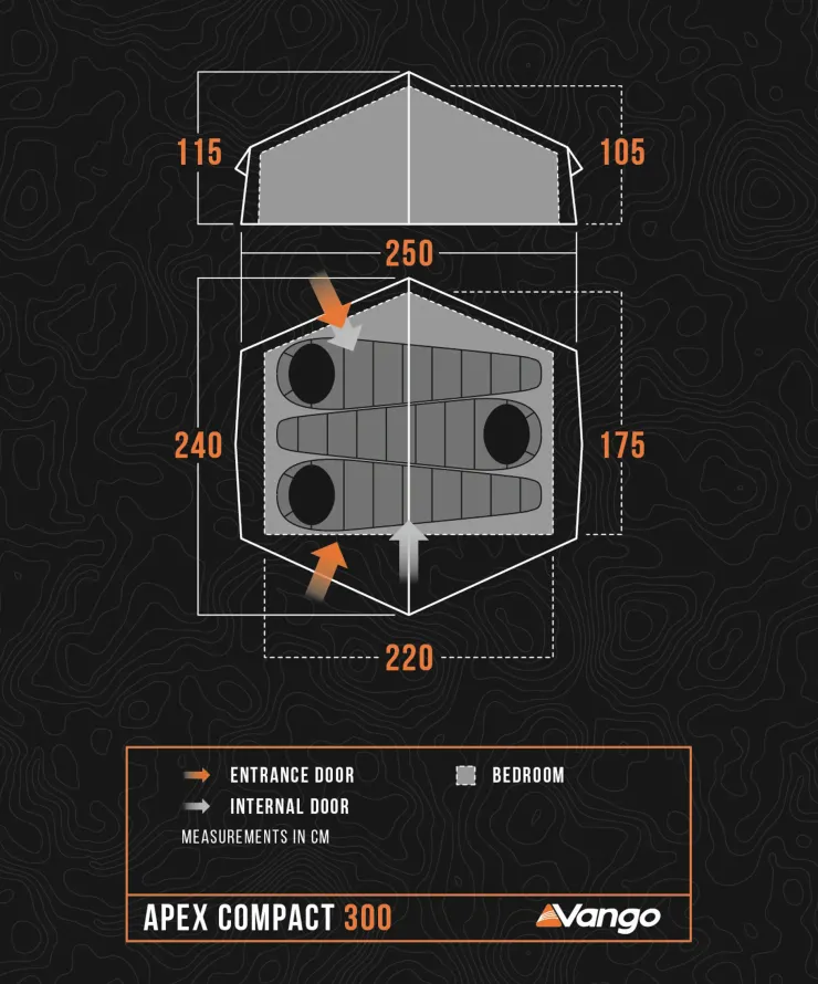 For added comfort, a Vango Apex Compact 300 Footprint can be purchased to help protect the tent’s floor from abrasion and to keep ground moisture from rising in the vestibule.