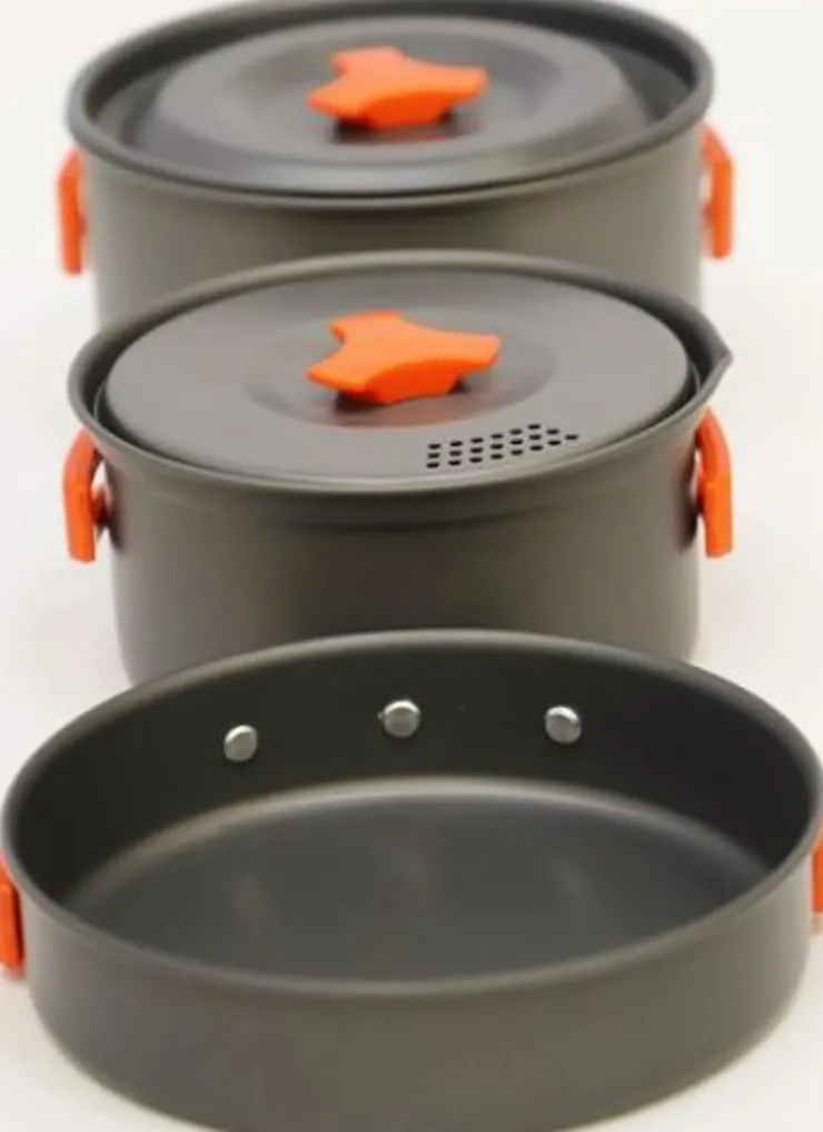 - Ideal cook set for up to 2 people, including 2 pots and 1 frying pan