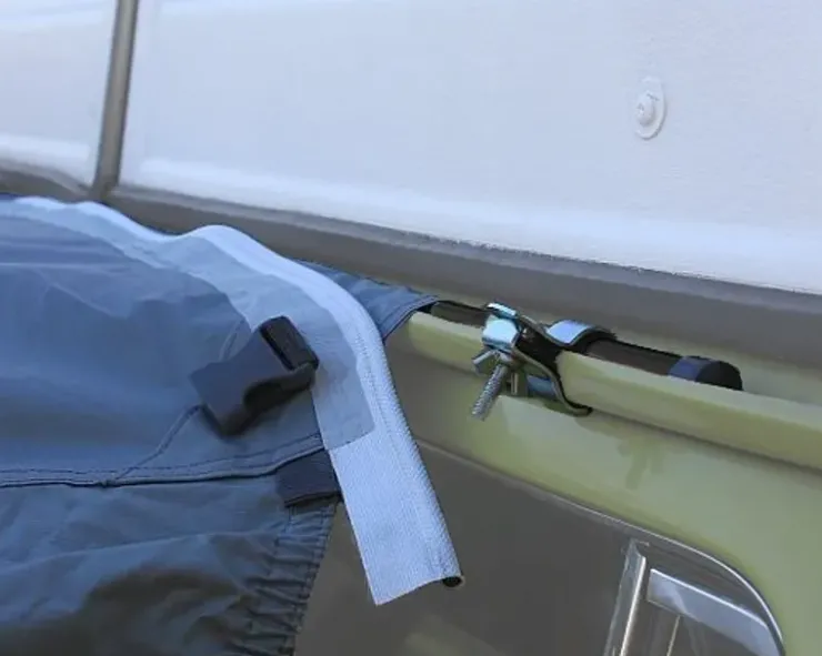 Ideal for your campervan, simply slide the pole into the sleeve at the top of the rear section of the awning, place the pole and fabric into the gutter and use the clamps to tighten. Suitable for all drive away awnings.
