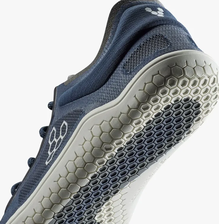 The Primus Outsole is a light and thin 2mm performance outsole that’s designed to put as little as possible between your feet and the ground. The side wall profile is as low as it can be, giving it a slightly lower profile towards the heel, and the sole subtly overlaps the toe – offering enough protection for urban environments, without compromising natural movement. Strong geometric shapes lead to strong feet, so the tread pattern uses our signature hexagonal design to help multidirectional flexibility and grip.
