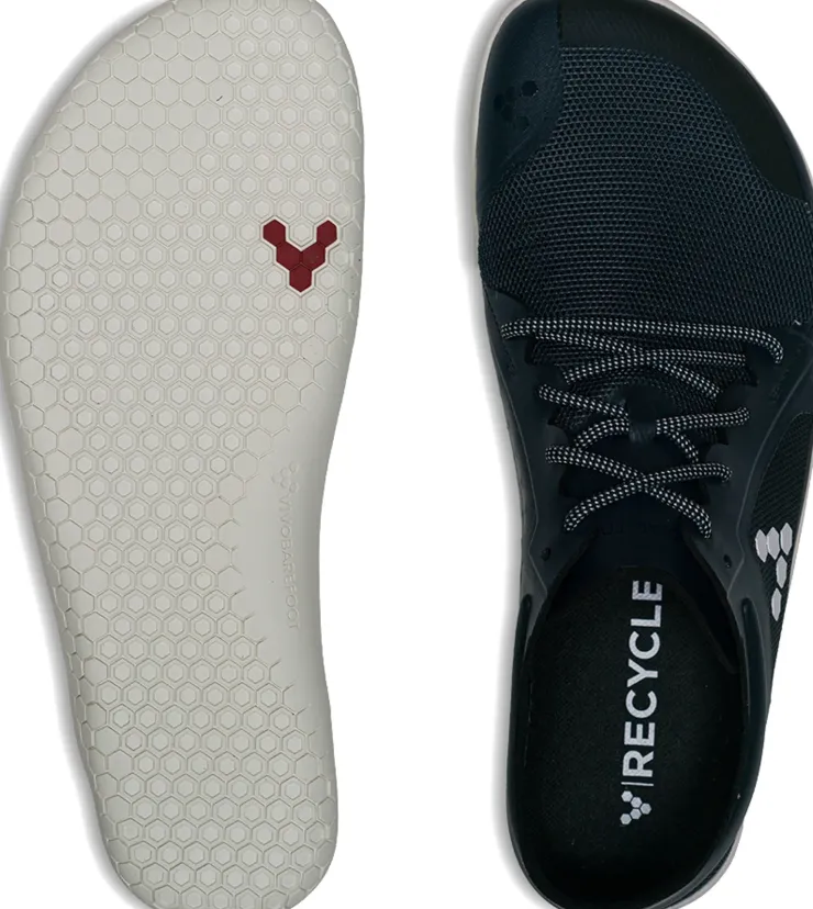 The Primus Outsole is a light and thin 2mm performance outsole that’s designed to put as little as possible between your feet and the ground. The side wall profile is as low as it can be, giving it a slightly lower profile towards the heel, and the sole subtly overlaps the toe – offering enough protection for urban environments, without compromising natural movement. Strong geometric shapes lead to strong feet, so the tread pattern uses signature hexagonal design to help multidirectional flexibility and grip.