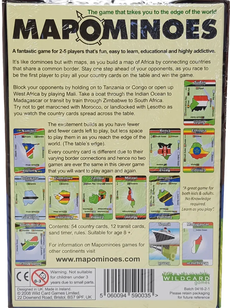It’s like dominoes but with maps, as you build a map of both countries and continents, by connecting counties, states or countries that share a common border. Stay one step ahead of your opponents, as you race to be the first player to play all your cards onto the table and win this geography game.