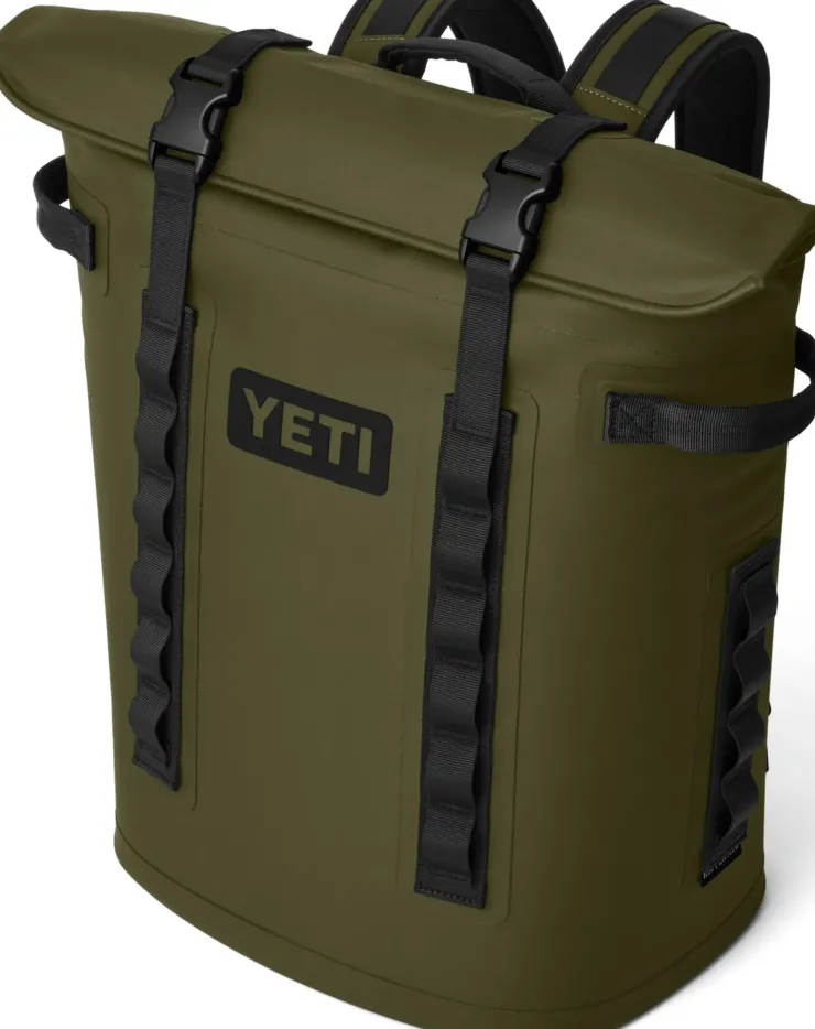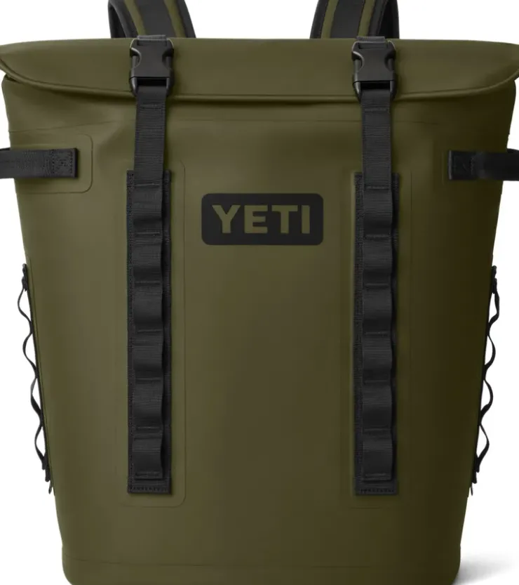 The hands-free YETI Hopper Backpack M20 Soft Cooler comfortably straps on like a backpack to keep you mobile, while a strip of ultra-strong magnets keeps the cold locked in.